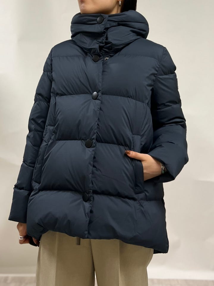 Aラインのシルエットとドットボタンでカジュアルになりすぎず着用頂けます。