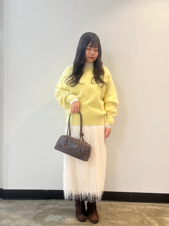 着心地:カシミヤとフォックスがブレンドされていてとてもふわふわで温かいです。スカートと合わせて女性らしいコーデもパンツと合わせてカジュアルにもできるので使いやすいニットです。