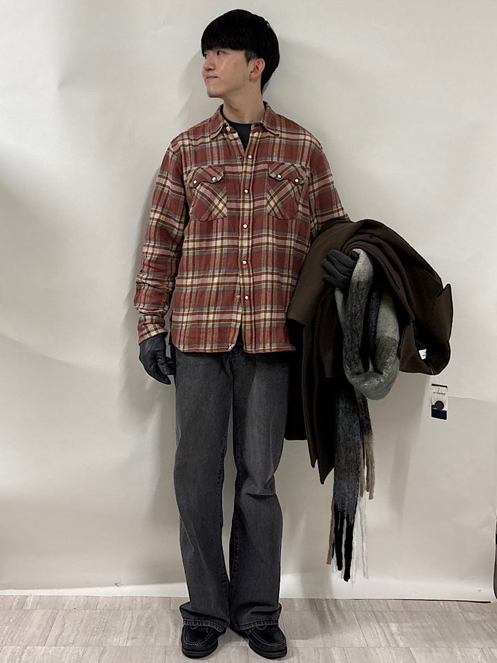 〔ONE SIZE〕City Ambient Products: シャギー チェック ボリューム マフラー