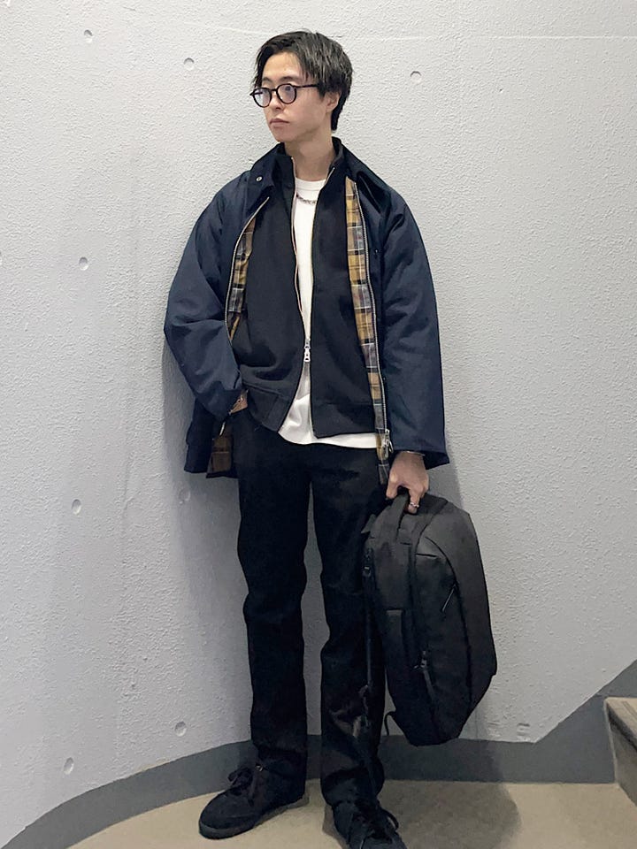 別注バブアーのモノトーン系コーデ
