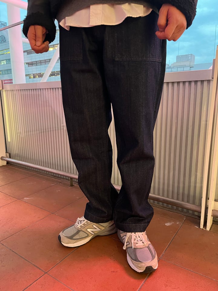 着心地:デニム生地を採用しておりガシガシ履いて経年変化を楽しめるパンツになっています。