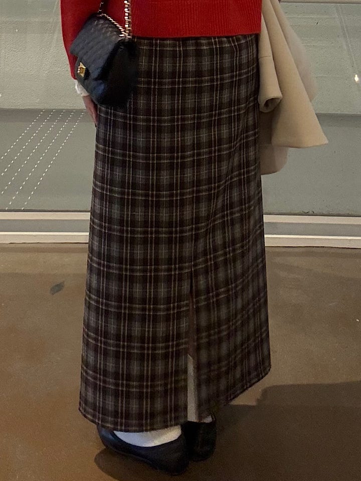 〔ONE SIZE〕SHIPS Colors:〈手洗い可能〉ジャージー へリボーン / チェック タイトスカート