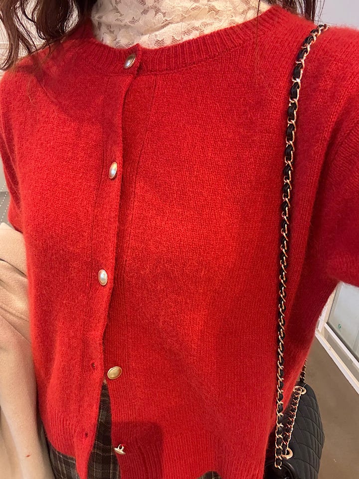 〔ONE SIZE〕SHIPS Colors:フォックス アンゴラ クルーネック カーディガン◇