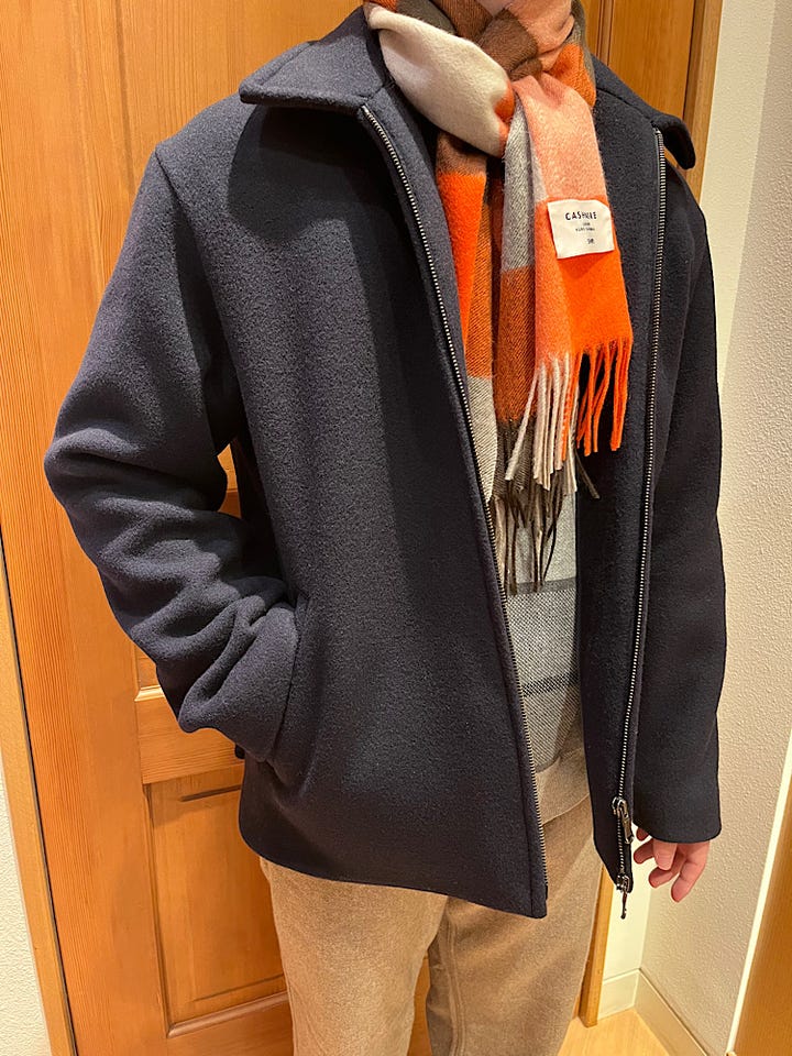 【素材感・着心地】メルトン生地のジップブルゾン。しっかりとした生地感で、ゆとりがあるデザインの為ニット等着込みやすい。