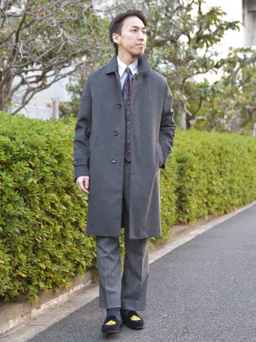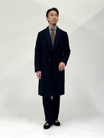 タイドアップでもノーネクタイでもスタイリングを格上げしてくれる確かな存在感があるコートです。