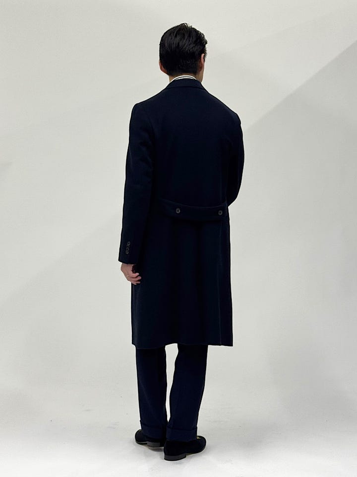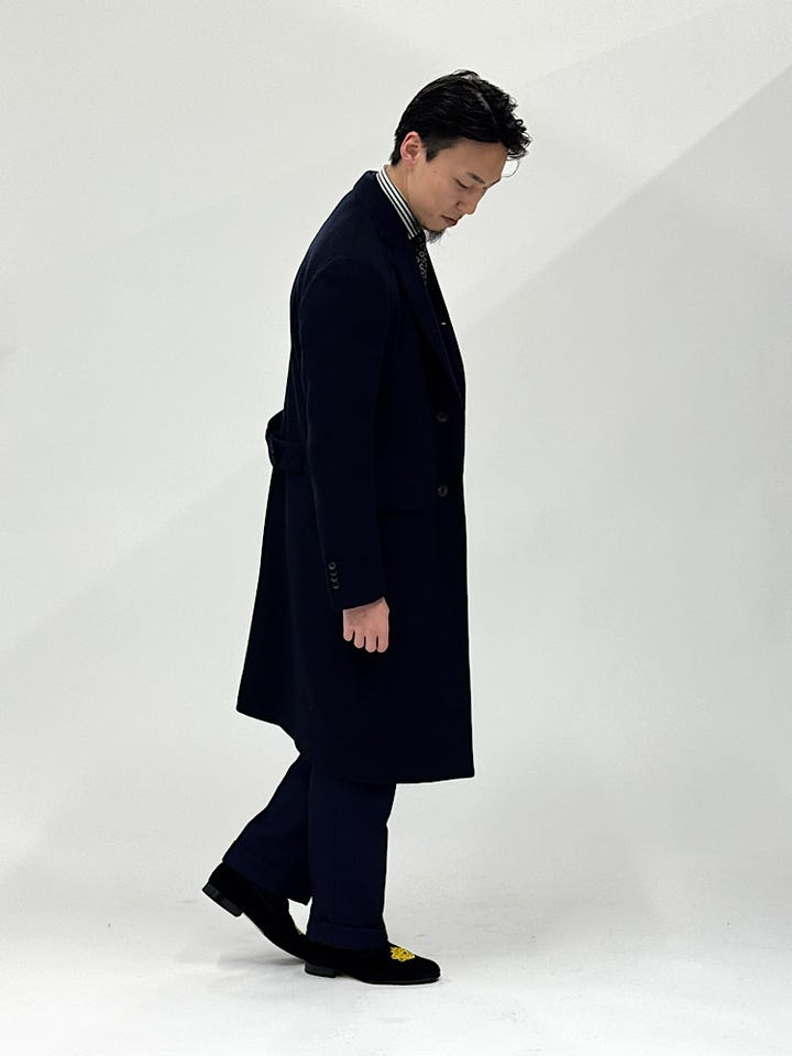 タイドアップでもノーネクタイでもスタイリングを格上げしてくれる確かな存在感があるコートです。