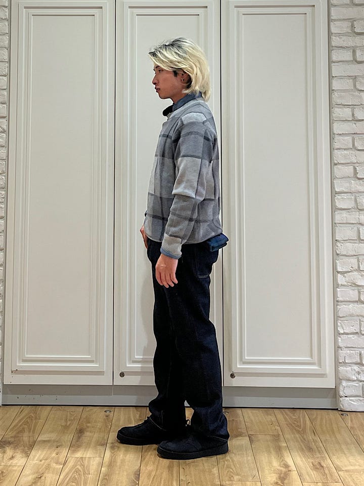 〔MEDIUM〕SHIPS:〈洗濯機可能〉 コットン カシミヤ チェック クルーネック ニット