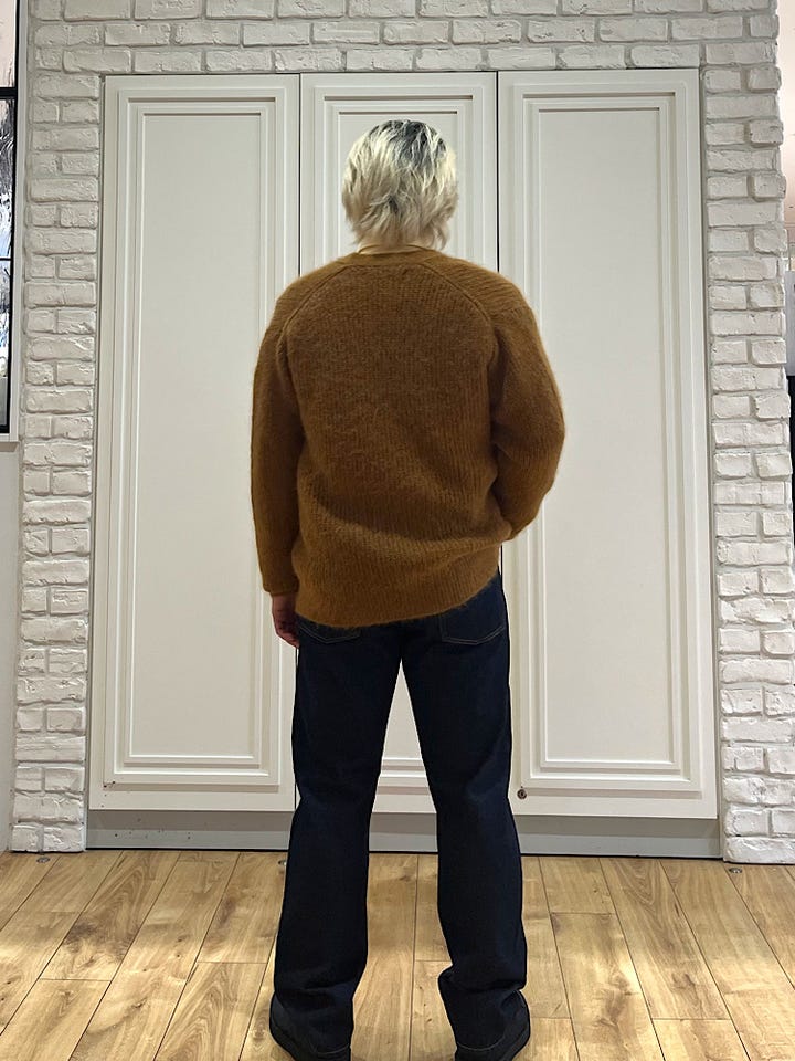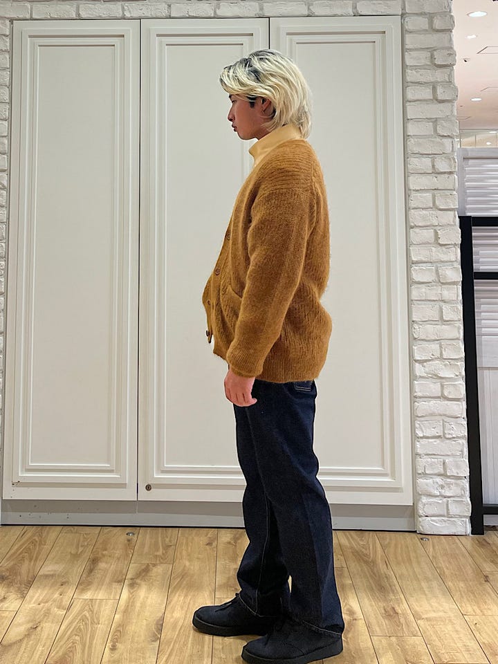 着心地:ゆったりとして暖かいカーディガンです。モヘヤ特有の良い肌触りが特徴です。