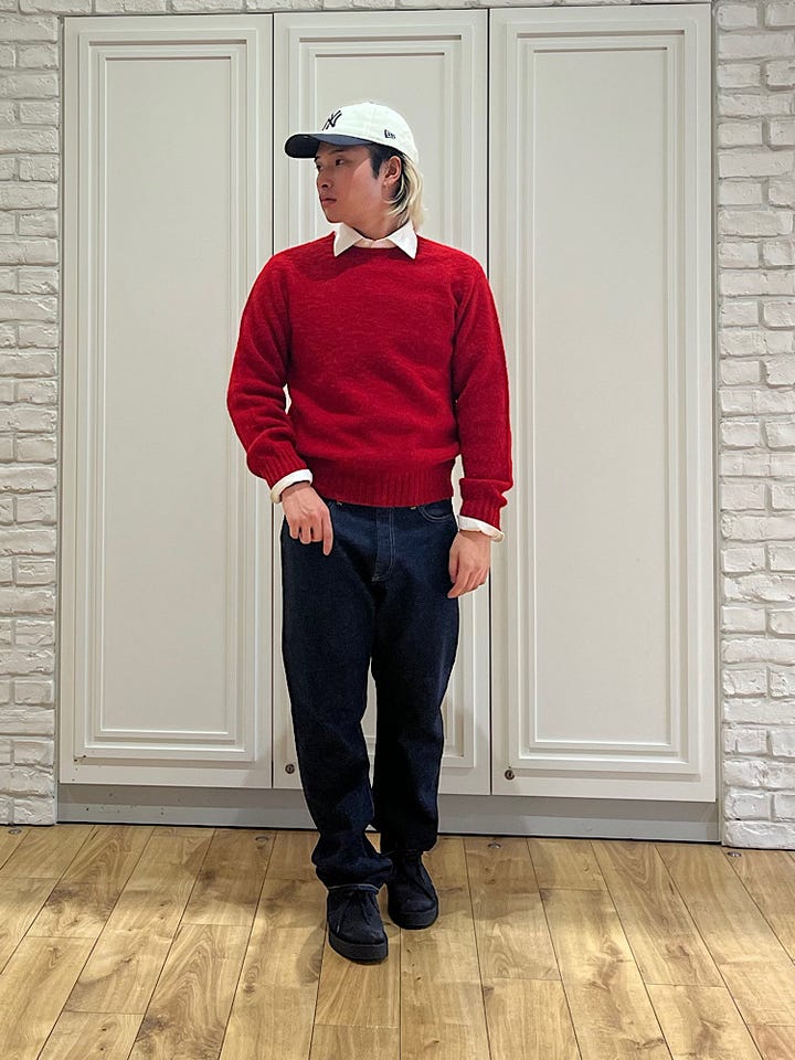 〔MEDIUM〕【SHIPS別注】HARLEY OF SCOTLAND: ウール シャギー クルーネック ニット