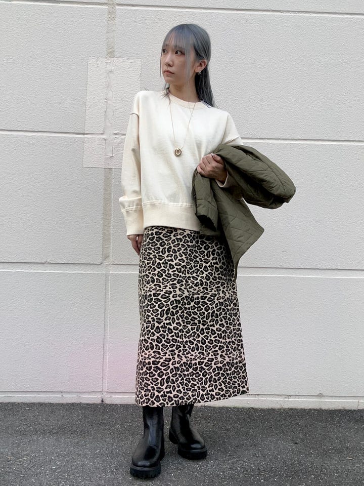 凹凸感のある綺麗めな生地感なので、合わせやすいスカートです。