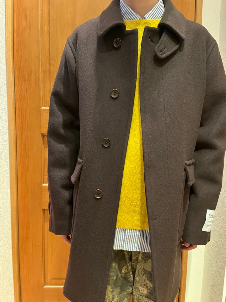 【素材感・着心地】メルトンですが重たすぎず、しっかりとした着用感があります。シルク混で上品な雰囲気もプラスされています。