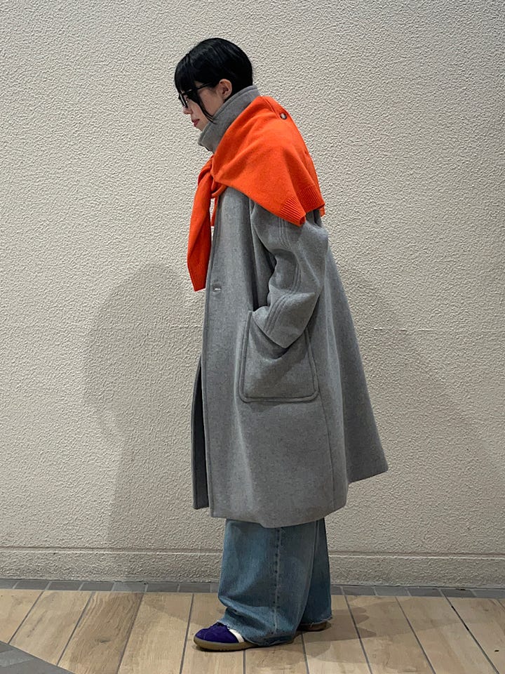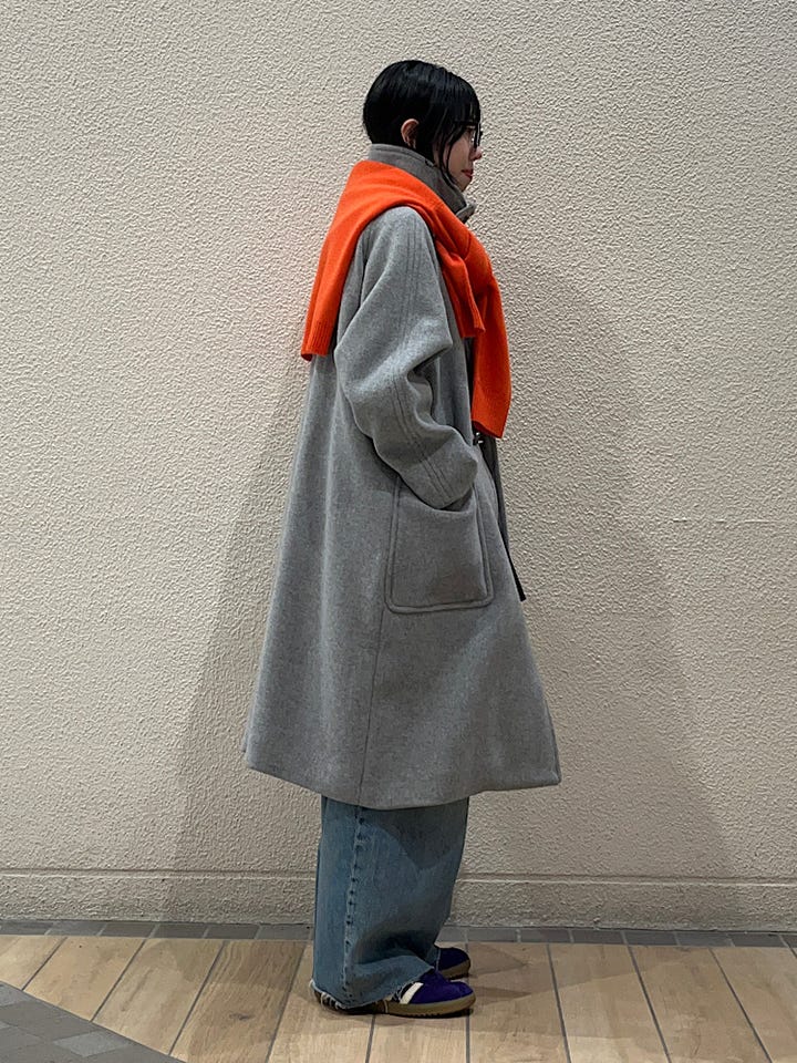着心地:とても軽く厚みのあるウールコートとは思えないほどです。動きやすくストレスフリーなので今まで重みでロングコートを諦めていた方にぜひオススメしたい一着です!