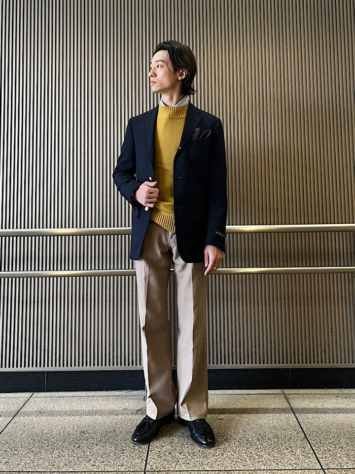 サイズ感:ジャストサイズ。シャツ+ニットの上から着ると少し窮屈感があります。