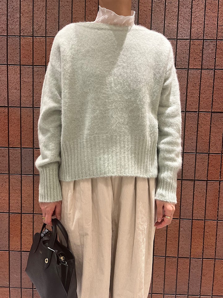 着心地:フォックス100%のお家でもお洗濯可能なニットです。軽くて暖かくフォックスの肌触りがとても◎です!