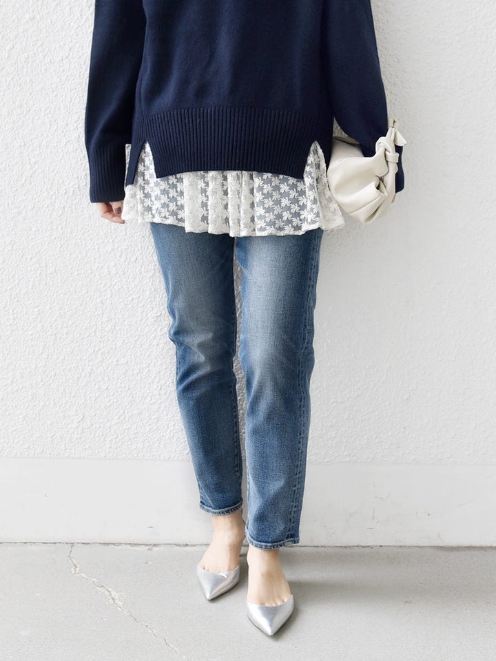 ■ヒップ:ピッタリすぎずゆとりがありますが、気になる方は少し長めのトップス合わせがおすすめです。