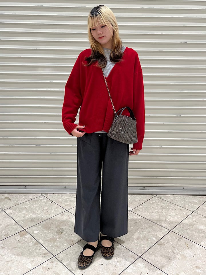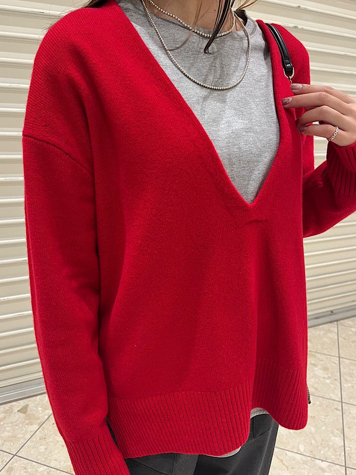 着心地:Vネックなので、インナーはロゴの入ったロンTやハイネックと合わせるコーデがオススメです◎