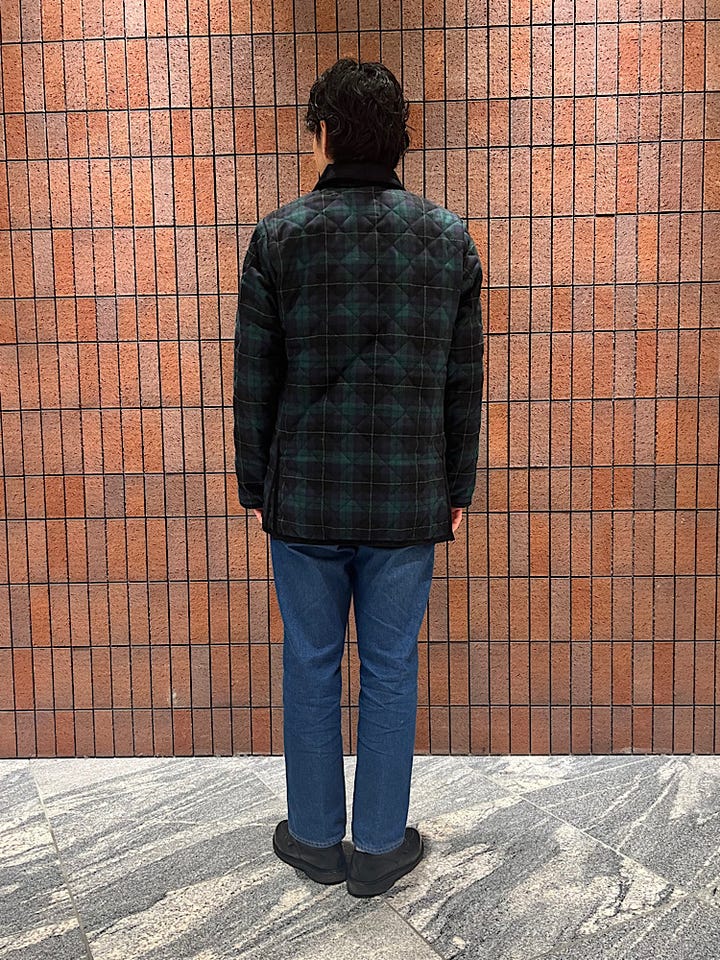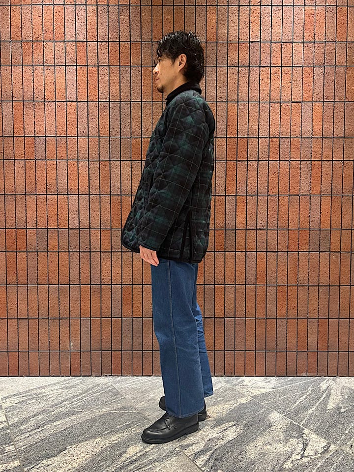 年齢:30代前半/身長:180cm/体重:74kg/ウエスト:82p/体型:標準/肩幅:普通/普段サイズ:40/着用サイズ:40