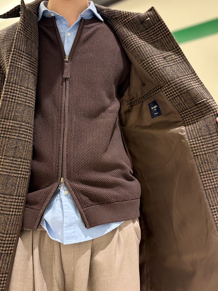 〔SMALL〕SHIPS:〈洗濯機可能〉SOLOTEX(R) コットン ピケ クルーネック ジップ カーディガン