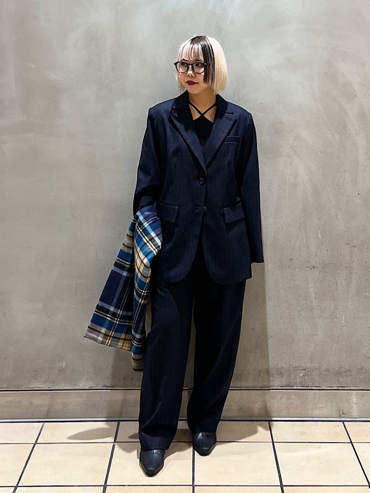 〔36〕SHIPS Primary Navy Label:チョークストライプ ビッグ ジャケット(セットアップ対応)