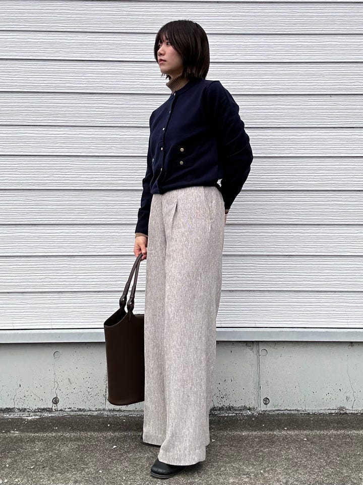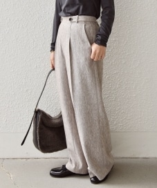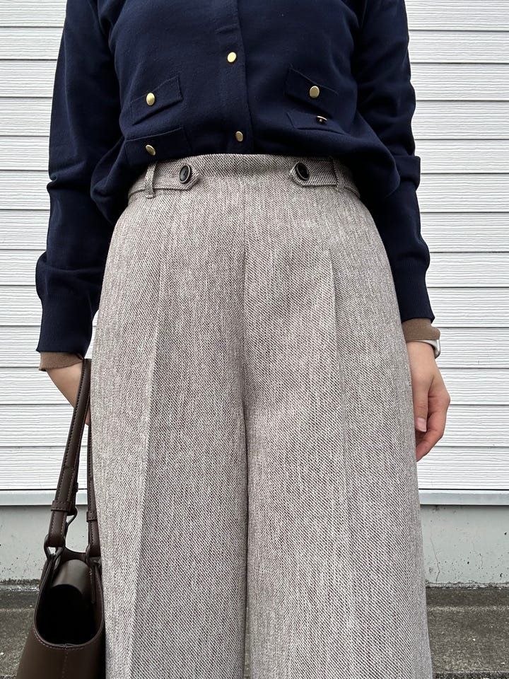 〔MEDIUM〕SHIPS Colors:〈手洗い可能〉カラー ミックス ツイード ボタン ワイドパンツ◇