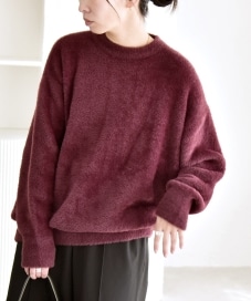 〔ONE SIZE〕quaranciel:〈手洗い可能〉ファーライク クルーネック ニット プルオーバー