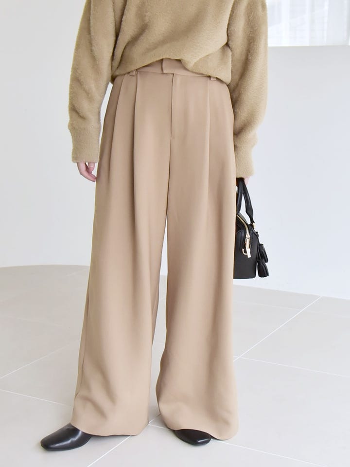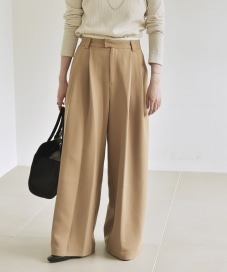 〔38〕quaranciel:〈洗濯機可能〉ダブルクロス ウエスト ライン タック ワイド パンツ