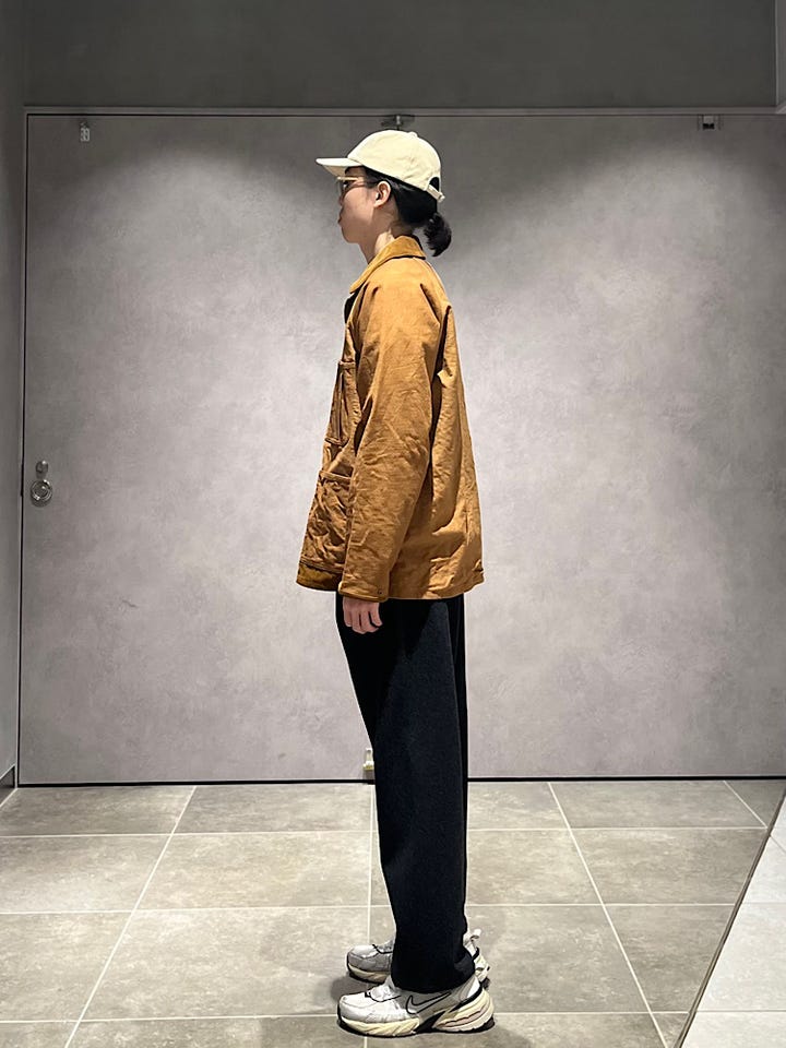 着心地: 袖丈、着丈共にやや長めですが、ジャストで着ないことでよりカジュアルに着れるかと思います。不規則なポケットも可愛いです。