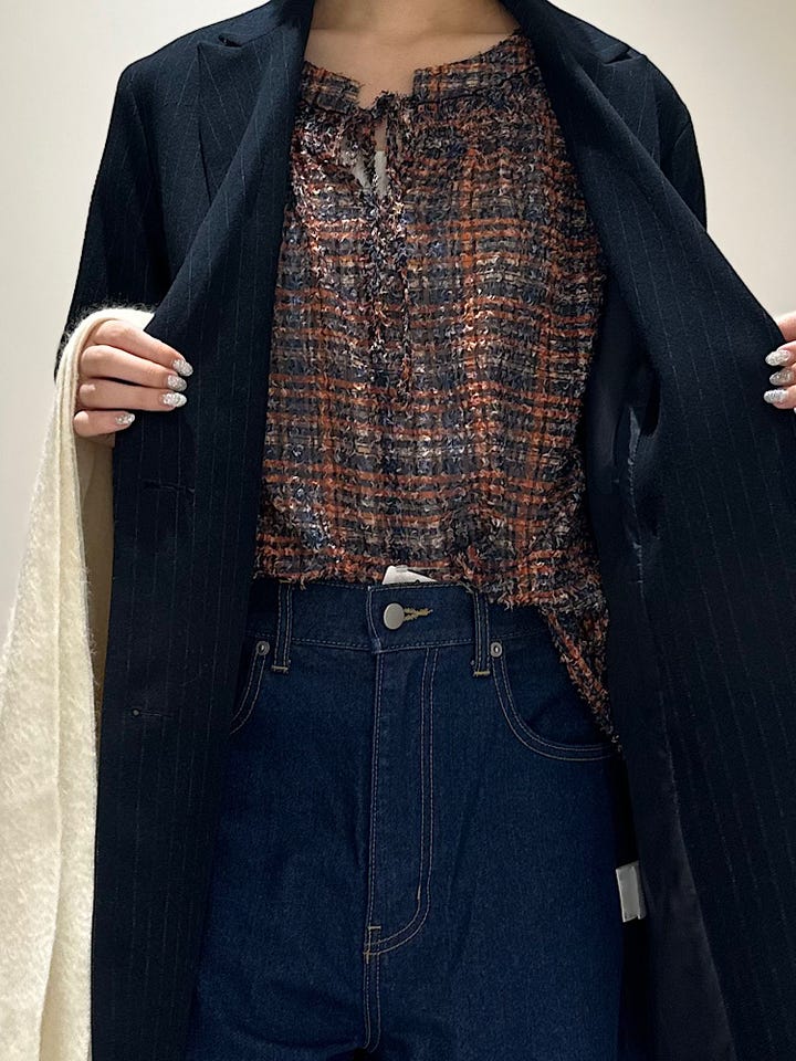 〔ONE SIZE〕SHIPS Colors:〈手洗い可能〉カット ジャカード チェック ブラウス