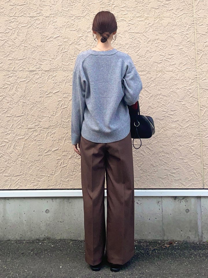 広がりすぎない綺麗なワイドシルエットで、後ろがゴムになっているので楽に着用できる。