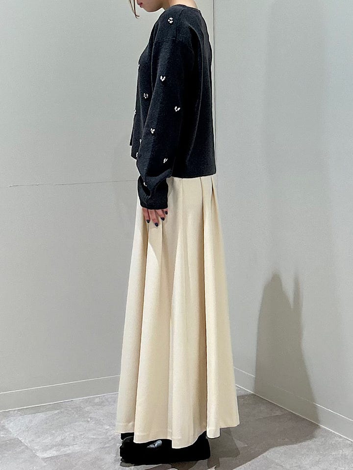 【素材感・着心地】長めの着丈で女性らしい揺れ感があり大人な印象があります。きれいめスタイルからカジュアルスタイルまで幅広いジャンルで着用頂けます!ウエスト後ろはゴムでとても楽です!