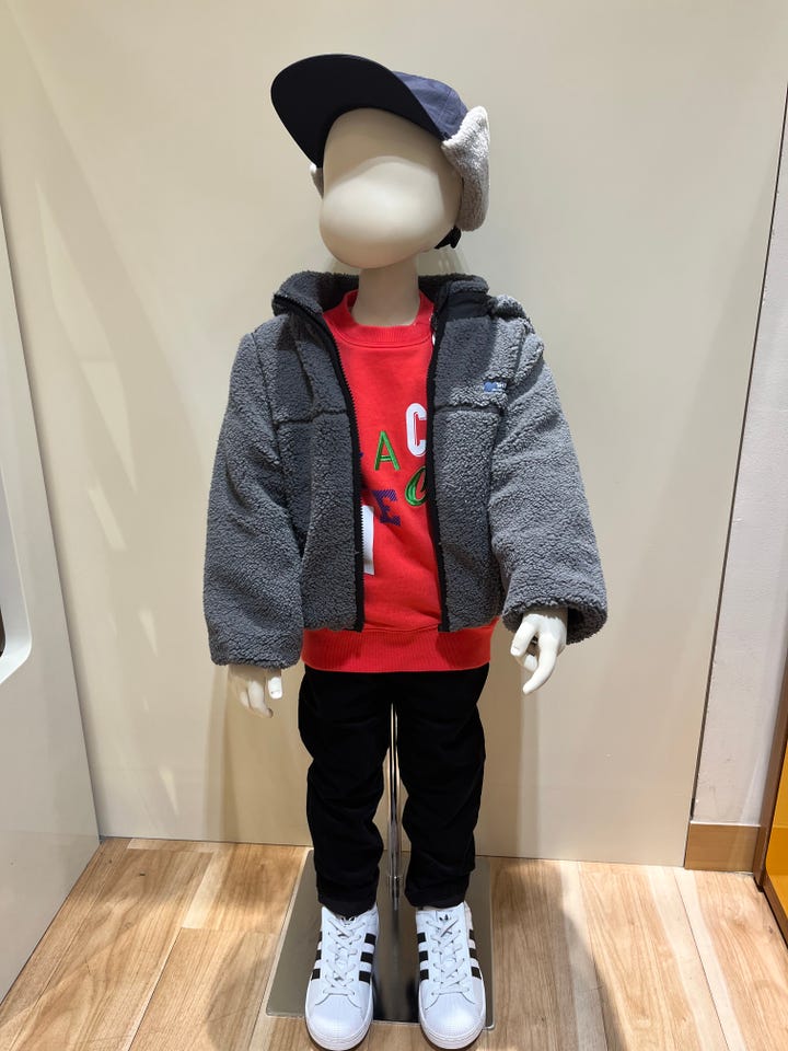 ボリュームあるボアが暖かな、軽い着心地のジャケットです。フードは取り外し可能、ご自宅でお洗濯可能なので、お外で遊ぶのが大好きなお子さまにオススメのアイテムです!