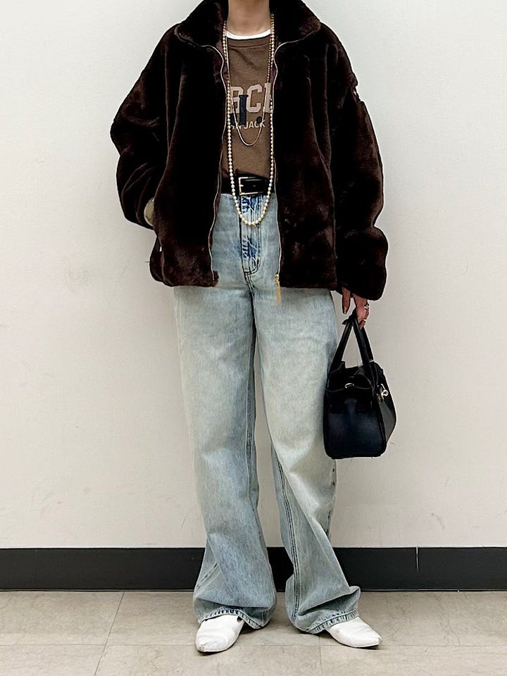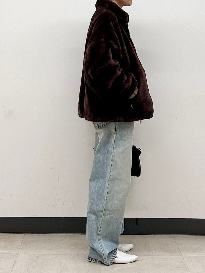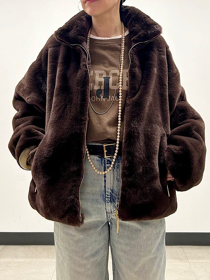 着心地:リアルファーのような上質な風合い。優しいなめらかな肌触りで、気持ちのいい素材。裏地付きで滑りもよく、軽いのでストレスなく着られます。