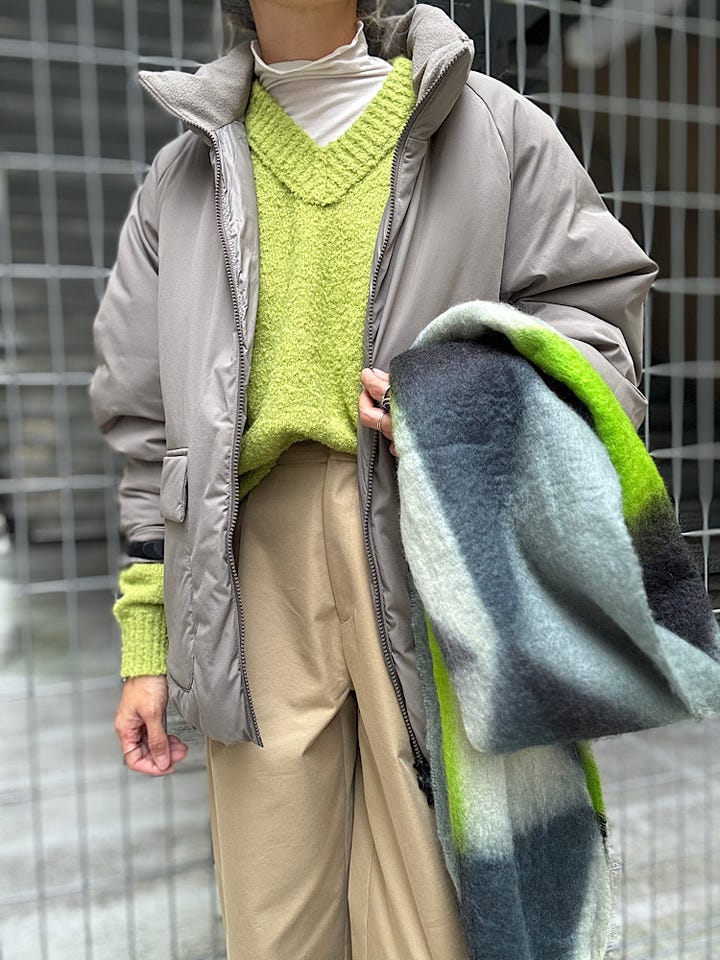 ボリューム感とフリンジがかわいいミックスカラーのマフラー