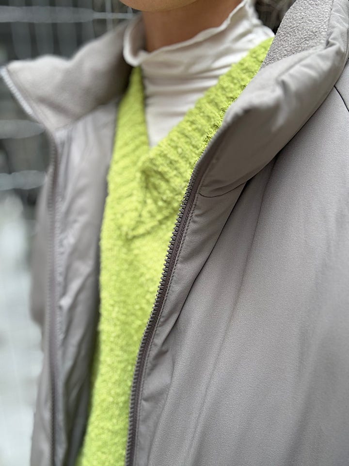 【素材感・着心地】スタンドカラーの中綿ジャケット。ボリューム感あり。