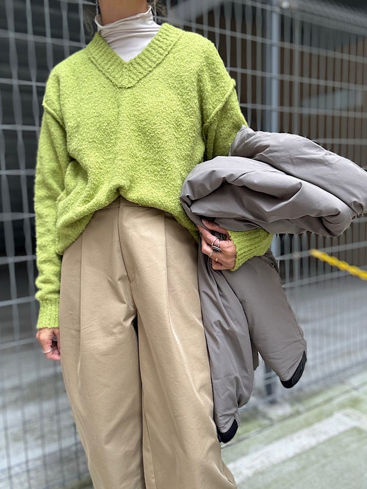 【素材感・着心地】風合いのあるループヤーンを使用したカラーニット。アクセントカラーに◎