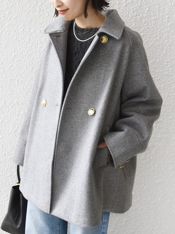 〔SMALL〕【WEB限定】〈手洗い可能〉ウール ライク ジャージー メルトン 2WAY Pコート