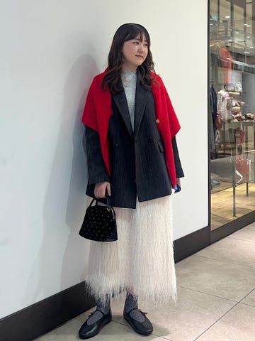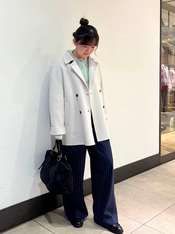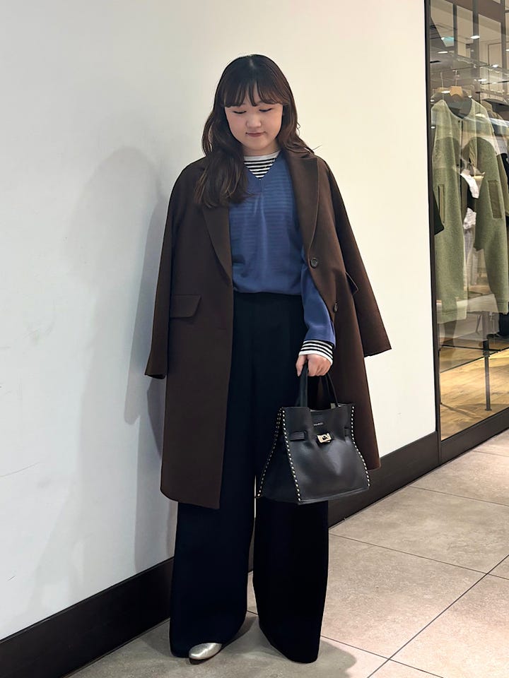 着心地:ポリエステルですが、ウールのような質感の素材です。どんなシーンでも万能に使えるワイドパンツです。