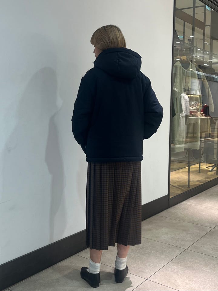 サイズ感:お尻まで隠れる長めな丈感で、着込んでも窮屈感のないゆったり感。