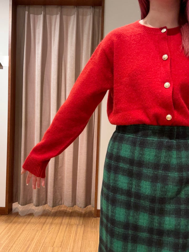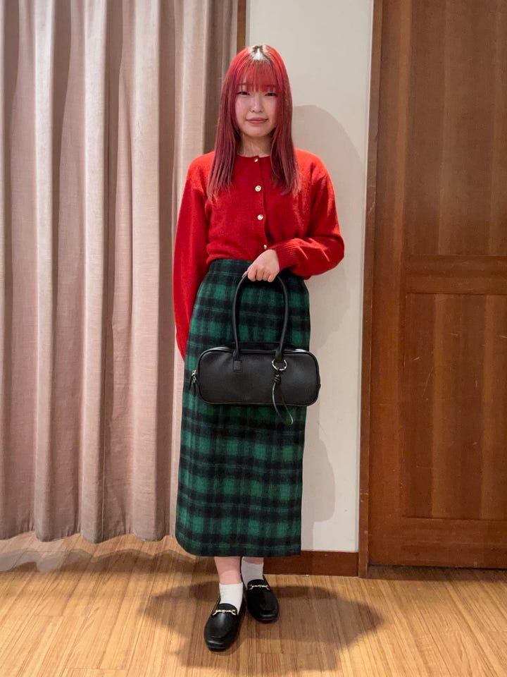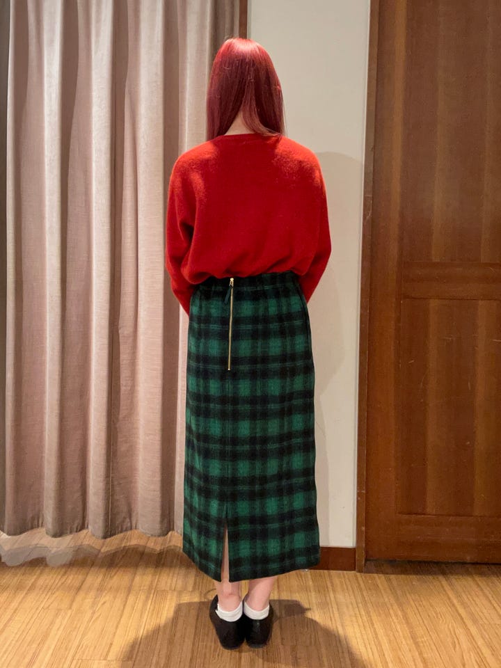 タイトなシルエットで上品見えするスカートです。大きめのチェック柄が冬らしくて可愛いです。