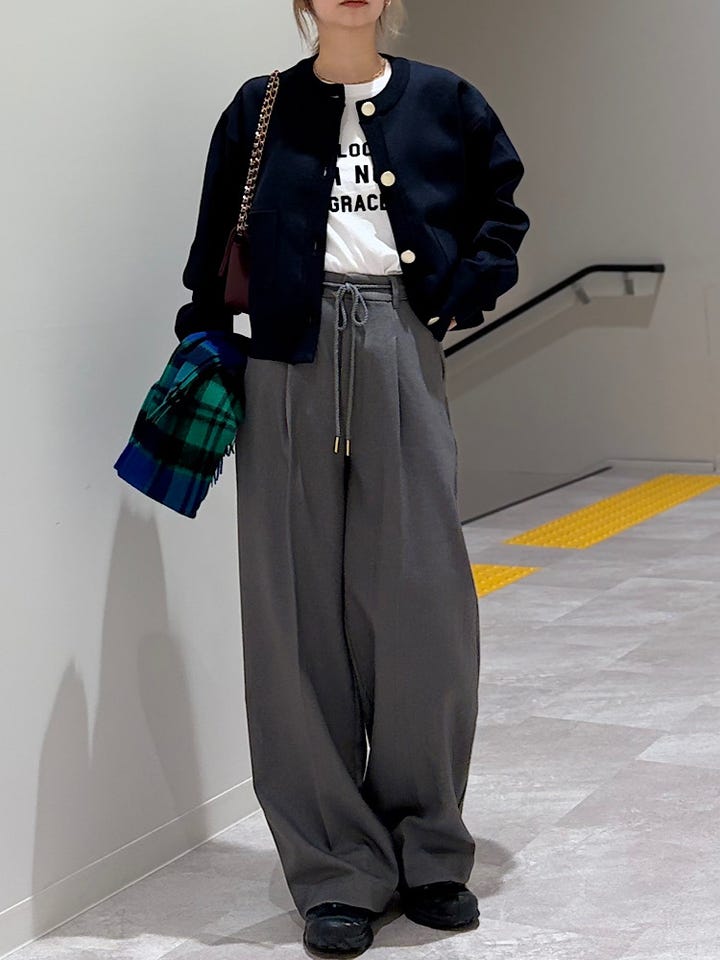 【素材感・着心地】落ち感のきれいなシルエット。かなり着心地も◎シワにもなりにくく、タックがついているので腰周りもスッキリ見せてくれます!