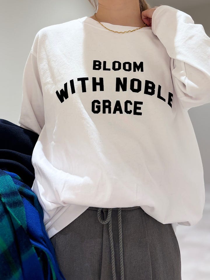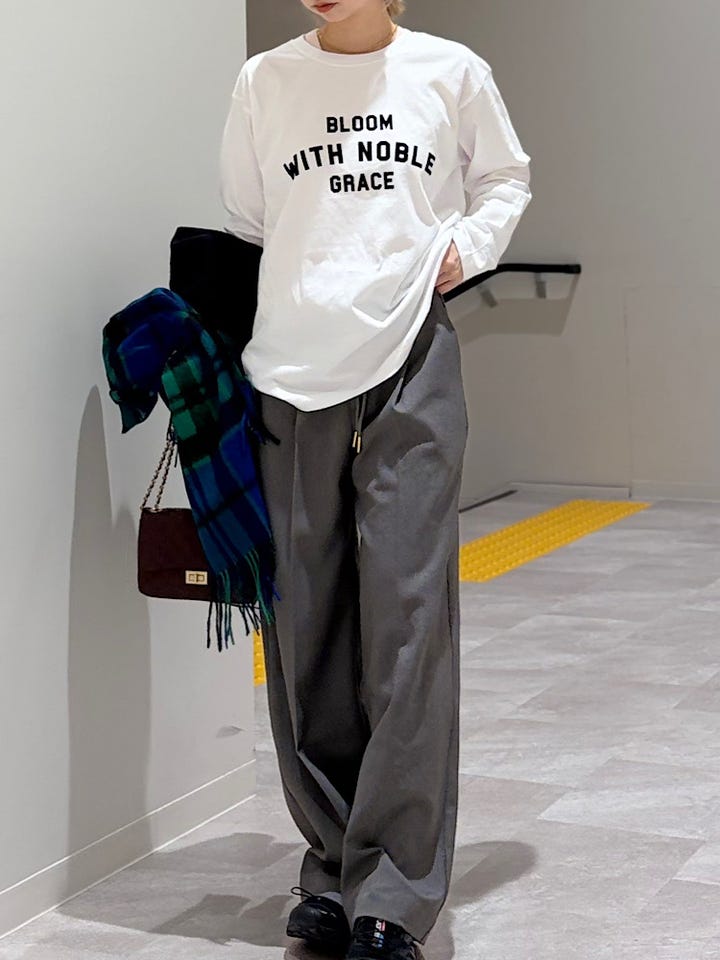 【素材感・着心地】ジャストのサイズ感で、インナーとしても着やすい。ロゴをジャケットやコートの間から見せるように着るのも◎
