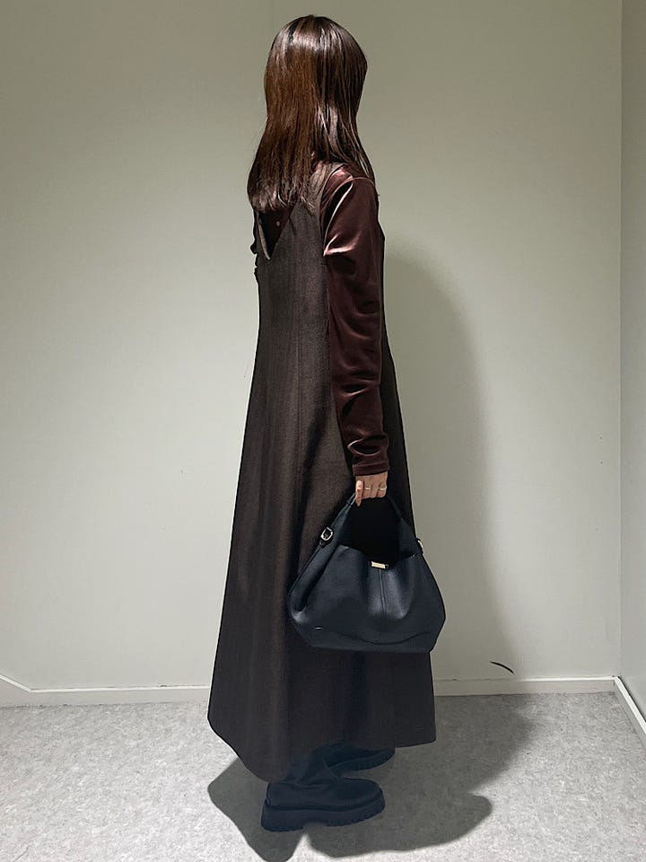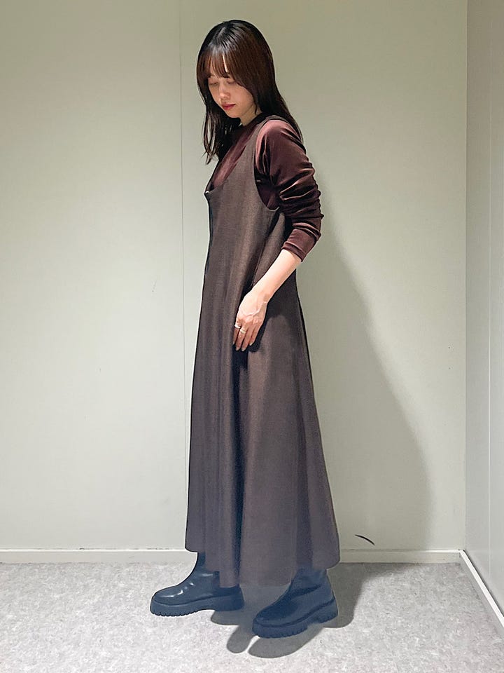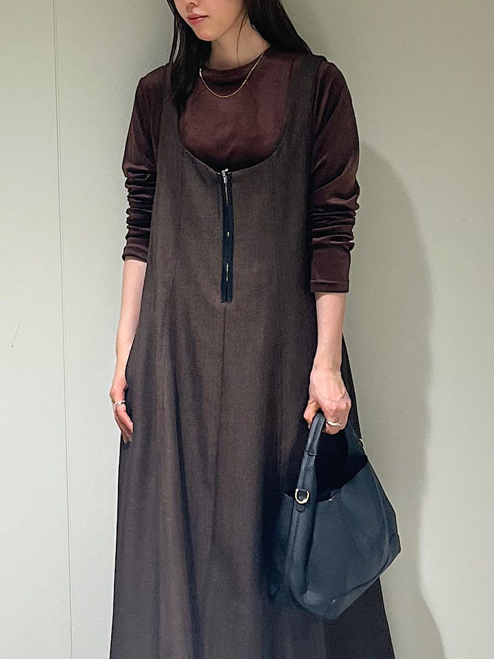 綺麗なAラインシルエットのワンピースです。いろんな色を織り込んだような奥行きのある生地になっていてかっちりした着こなしで行事ごとにも着用できるようなアイテムです!合わせるインナーでブラウスやニットなど長い季節でお楽しみ頂けます。
