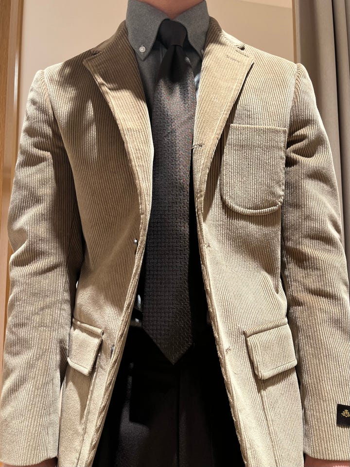 ハリのあるコーディロイ生地で、威厳のある雰囲気が出せます