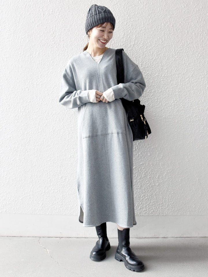 着用アイテム:USAコットン 裏起毛 ポケット スウェット ワンピース ライトグレー