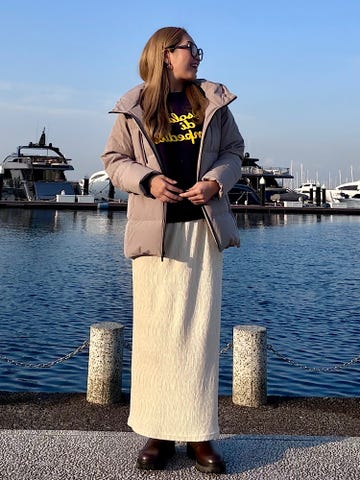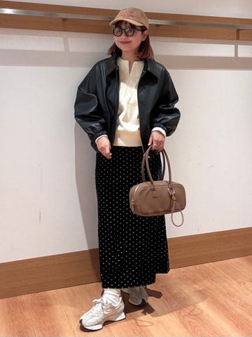 フレアシルエットでタックが入ってるのでスタイルアップしてみえます◎