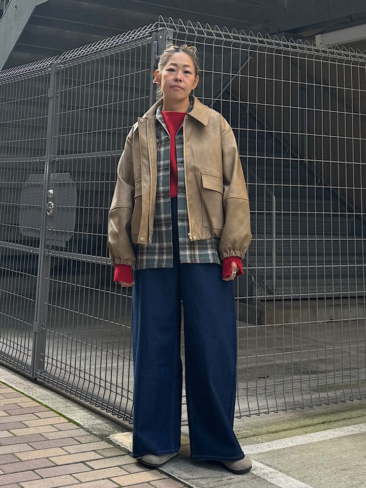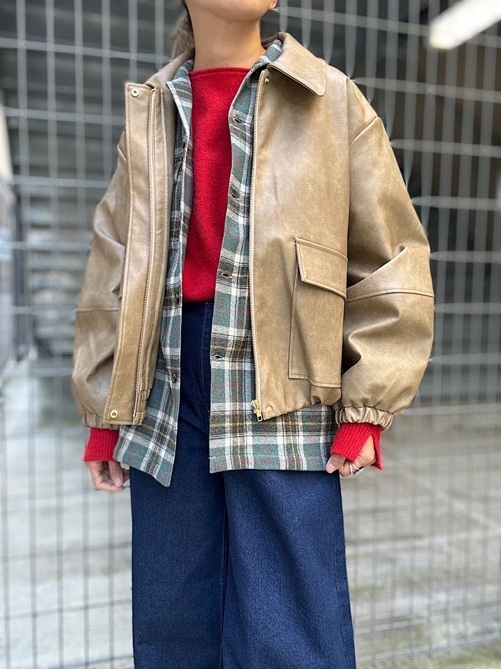 【素材感・着心地】オーバーサイズのバイカージャケット。ユニセックスでおすすめ。