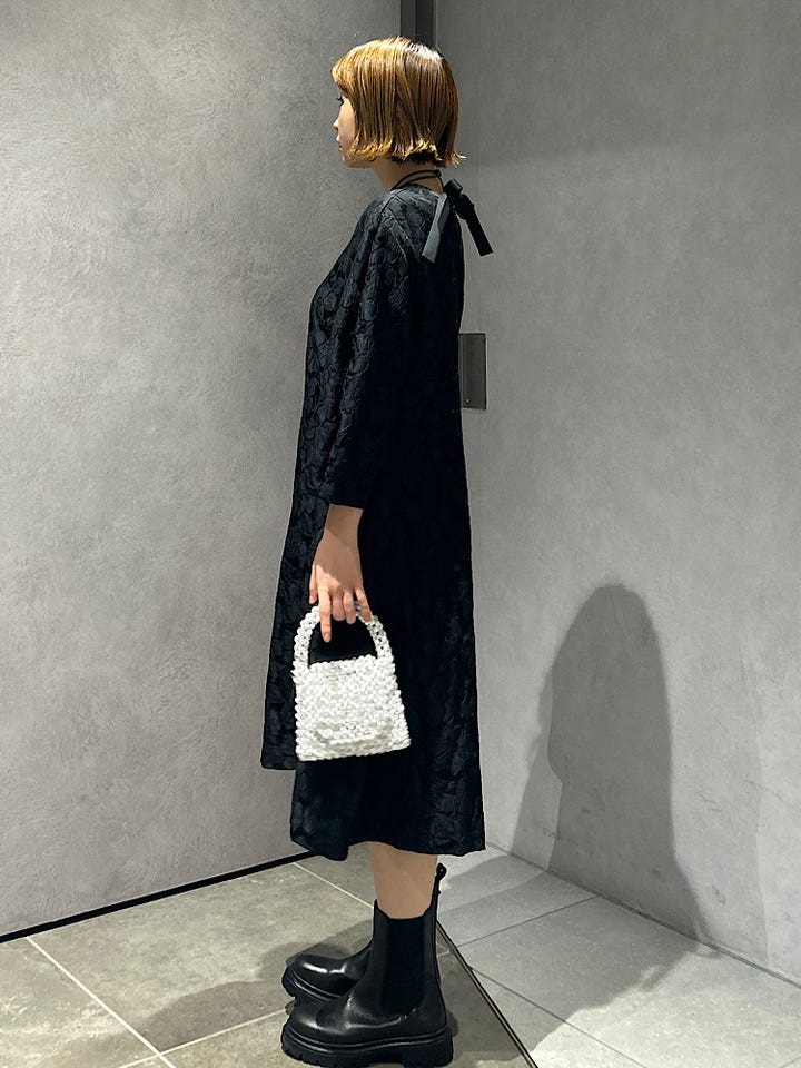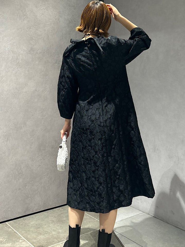 〔36〕〈手洗い可能〉膨れ ジャカード バックタイ フレア ワンピース
