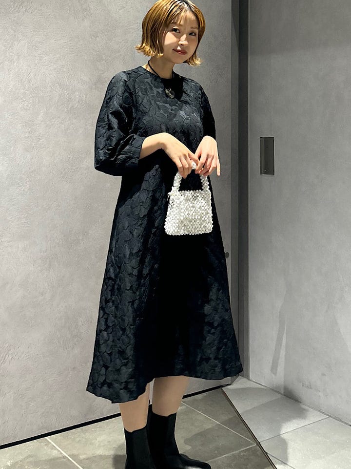 素材感・着心地:ほどよくハリのある素材で体のラインをひろいません。結婚式にもホリデーディナーにもおすすめです。