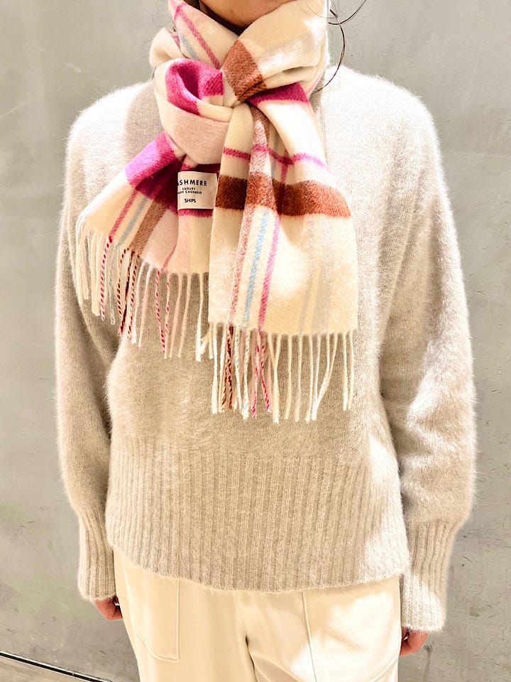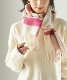 着心地:カシミヤで肌触りが良く、ピンクで華やかさがプラスできるマフラー