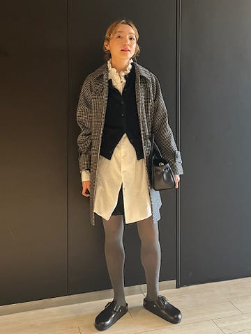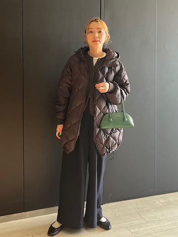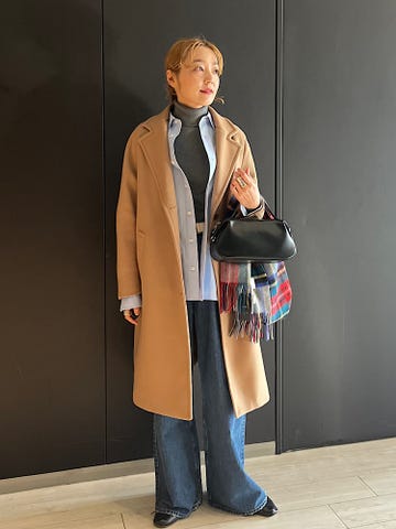 【素材感・着心地】柔らかいウール素材。着丈はジャスト丈ですが、肩周りはゆとりがあります。ダブルジップなので、インナーをチラリと見せると抜け感が出ます